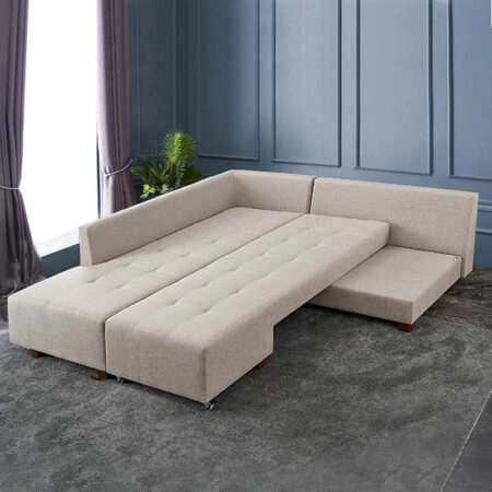 Γωνιακός καναπές – κρεβάτι Manama Megapap δεξιά γωνία υφασμάτινος χρώμα κρεμ 280x206x85εκ.