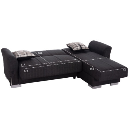 Καναπές Κρεβάτι Γωνιακός MATINEE Αναστρέψιμος Μαύρο Ύφασμα 220x155x81cm