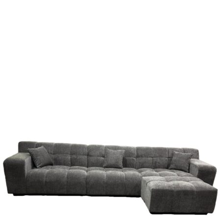 Γωνιακός καναπές με σκαμπό Slim υφασμάτινος χρώμα ανθρακί με μαξιλάρια 185x140x70εκ