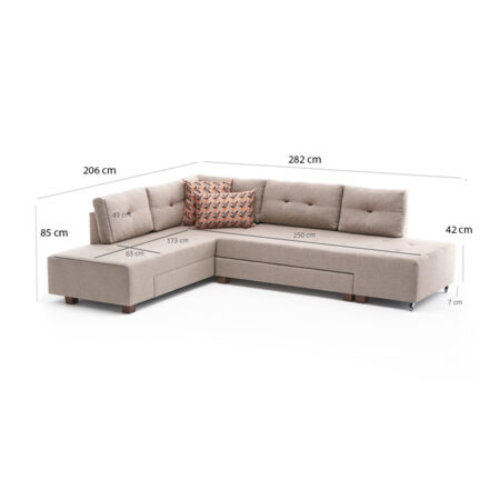 Γωνιακός καναπές – κρεβάτι Manama Megapap δεξιά γωνία υφασμάτινος χρώμα κρεμ 280x206x85εκ.