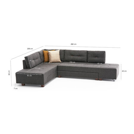 Γωνιακός καναπές – κρεβάτι Manama Megapap δεξιά γωνία υφασμάτινος χρώμα ανθρακί 280x206x85εκ.