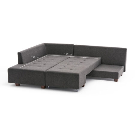 Γωνιακός καναπές – κρεβάτι Manama Megapap αριστερή γωνία υφασμάτινος χρώμα ανθρακί 280x206x85εκ.