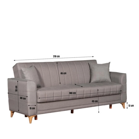 Καναπές Κρεβάτι Τριθέσιος GABRIEL 3S Γκρι 216x79x81cm