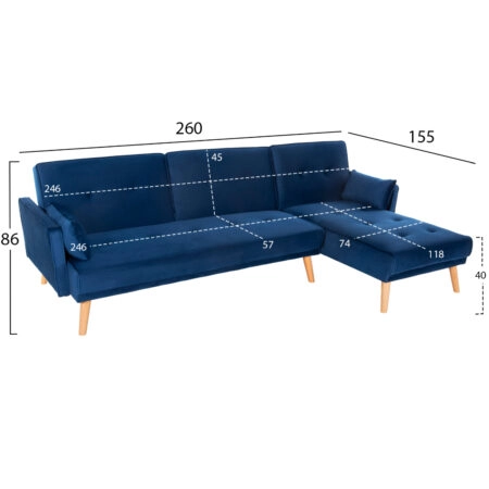 Καναπές Κρεβάτι Γωνιακός JOSE Μπλε 270x150x86cm