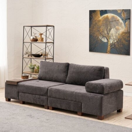 Καναπές – κρεβάτι πολυμορφικός Perenna Megapap τριθέσιος υφασμάτινος χρώμα ανθρακί 233x93x83εκ.