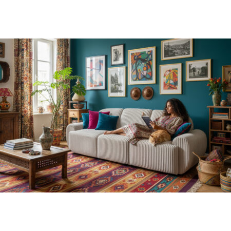 Καναπές Γωνιακός Αναστρέψιμος ArteLibre MAFFEI Μπεζ Ύφασμα 268x163x76cm