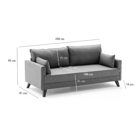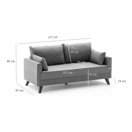 Καναπές Bella Megapap διθέσιος υφασμάτινος χρώμα ανθρακί 177x81x85εκ.
