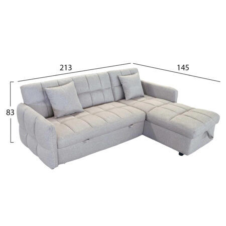 Καναπές MONTARO ArteLibre Γκρι Ανοιχτό Ύφασμα 140x105x65cm/206x124x68cm