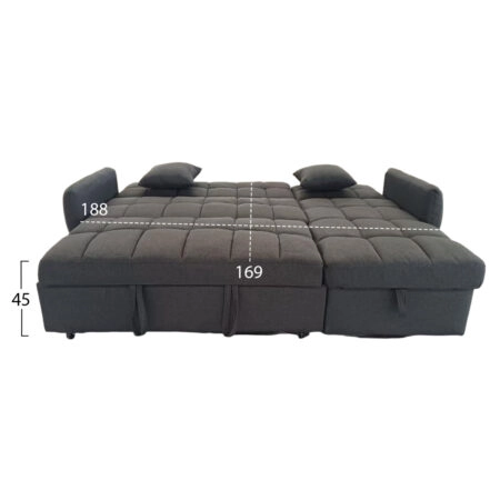 Καναπές Κρεβάτι ArteLibre VALMERO Μαύρο Ύφασμα/Ξύλο 216x85x85cm