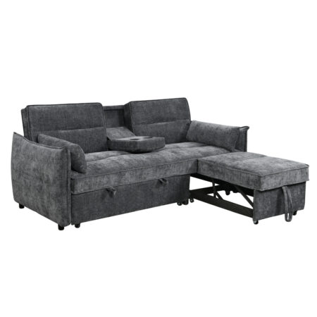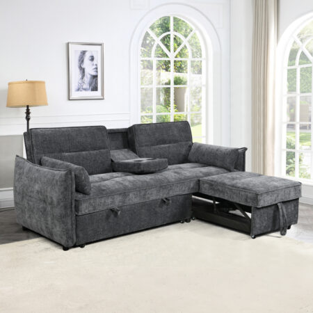Καναπές Γωνιακός ArteLibre AVELON Γκρι Σκούρο Ύφασμα/Ξύλο 249x312x82cm