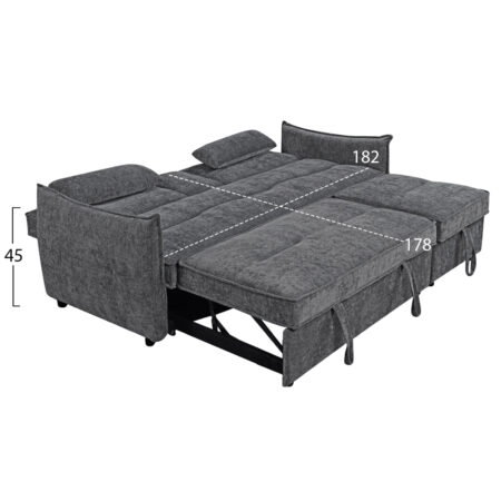 Καναπές Κρεβάτι ArteLibre ELVORE Γκρι Ύφασμα/Ξύλο 190x83x74cm