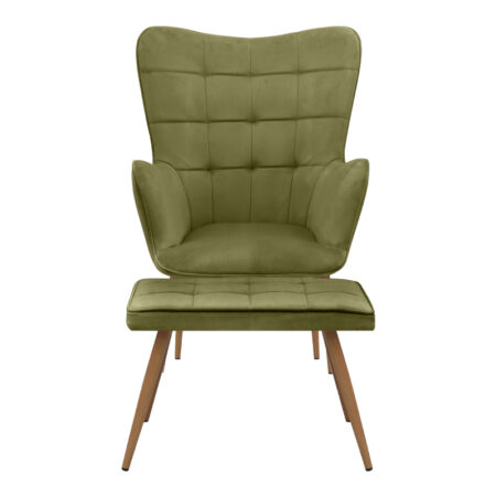 Πολυθρόνα – Μπερζέρα με υποπόδιο Lily Megapap σάπιο μήλο βελούδο – μεταλλικό πόδι χρώμα φυσικό 70x62x98εκ.
