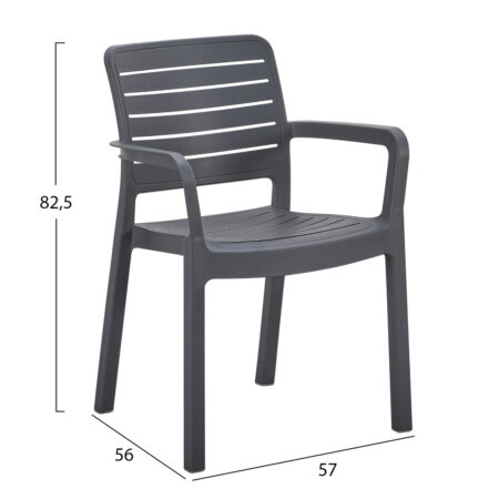 Πολυθρόνα πολυπροπυλενίου Clio recycled χρώμα ανθρακί 57x55x86εκ.