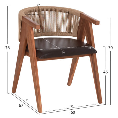 Πολυθρόνα πολυπροπυλενίου Kira χρώμα καφέ 58x52x87εκ.