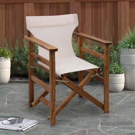 Σετ τραπεζαρία κήπου Queen ξύλινη τραπέζι 80×60εκ. – πολυθρόνα σκηνοθέτη καρυδί – εκρού πανί S_GP045-0004,1+GP045-0001,1×4