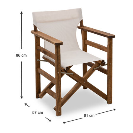 Πολυθρόνα σκηνοθέτη Queen ξύλινη μασίφ οξιά χρώμα καρυδί εμποτισμού με διάτρητο εκρού πανί 61x57x86εκ.
