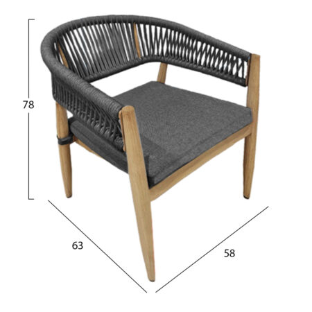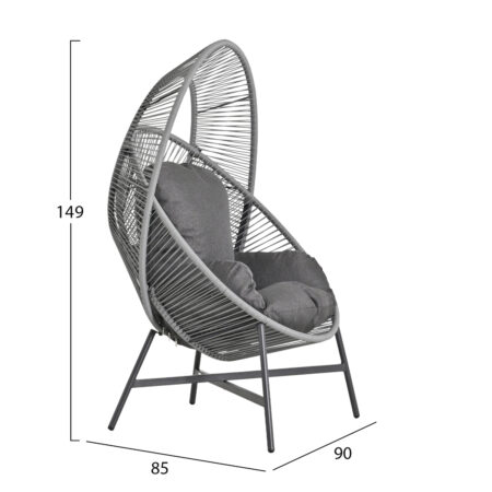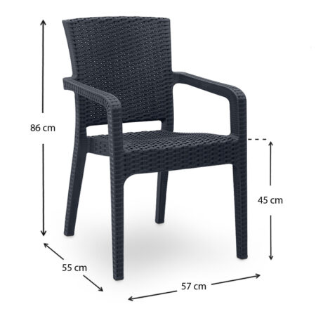 Πολυθρόνα πολυπροπυλενίου Clio recycled χρώμα ανθρακί 57x55x86εκ.