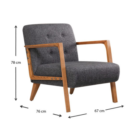 Πολυθρόνα Kemer υφασμάτινη χρώμα ανθρακί 67x76x78εκ.