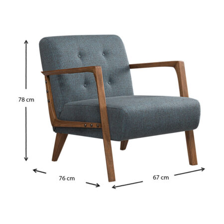 Πολυθρόνα Kemer υφασμάτινη χρώμα μπλε – καφέ 67x76x78εκ.