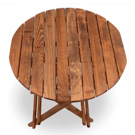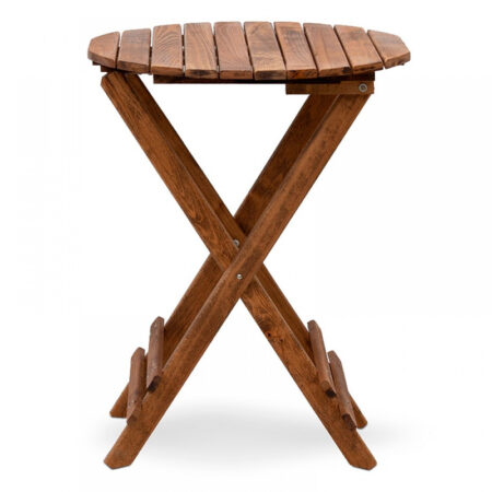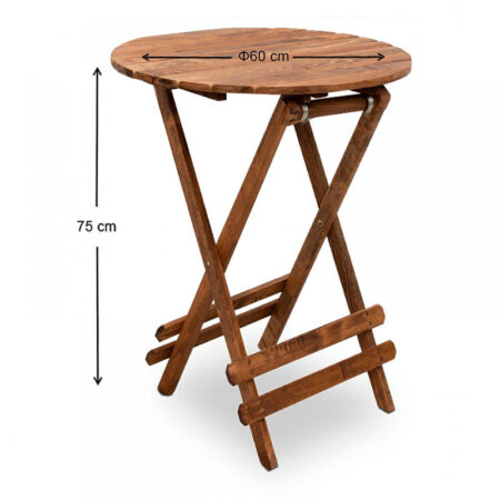 Σετ τραπεζαρία κήπου Queen ξύλινη τραπέζι Ø60εκ. – πολυθρόνα σκηνοθέτη καρυδί – εκρού πανί S_GP045-0003,1+GP045-0001,1×2