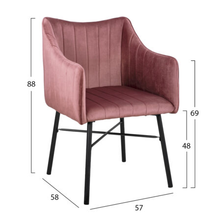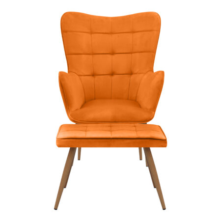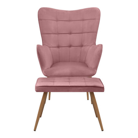 Πολυθρόνα – Μπερζέρα με υποπόδιο Lily Megapap σάπιο μήλο βελούδο – μεταλλικό πόδι χρώμα φυσικό 70x62x98εκ.