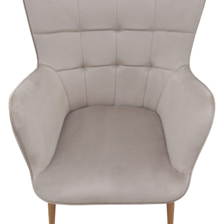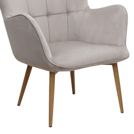 Πολυθρόνα – Μπερζέρα με υποπόδιο Lily Megapap κροκί βελούδο – μεταλλικό πόδι χρώμα φυσικό 70x62x98εκ.