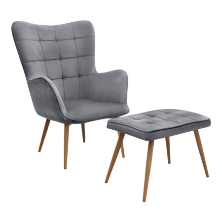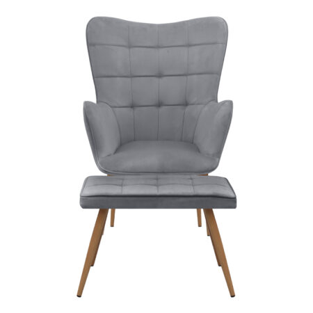 Πολυθρόνα – Μπερζέρα με υποπόδιο Lily Megapap γκρι βελούδο – μεταλλικό πόδι χρώμα φυσικό 70x62x98εκ.