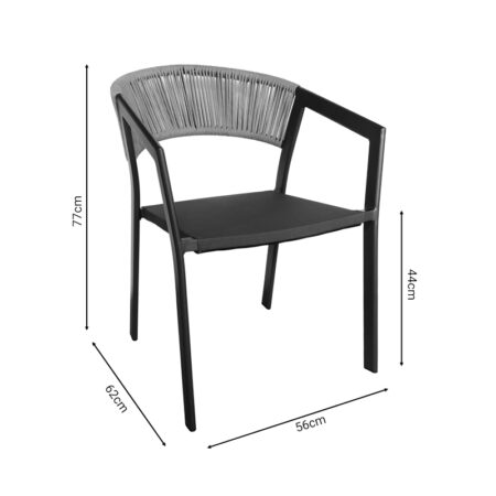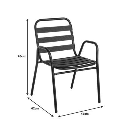 Τραπεζαρία Valor-Calan σετ 5τεμ μέταλλο μαύρο-γυαλί-textilene μαύρο 110x60x70εκ