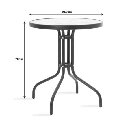 Τραπεζαρία Watson-Sussie σετ 3τεμ μέταλλο μαύρο-γυαλί Φ60×70εκ