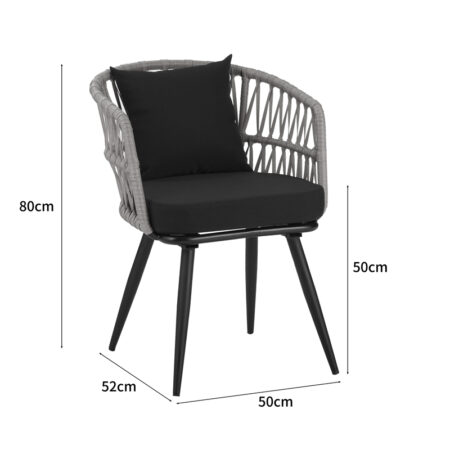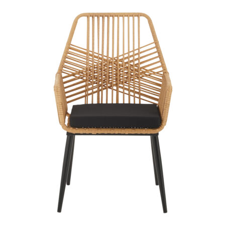 Τραπεζαρία Naoki V σετ 3τεμ rattan pe σε φυσική απόχρωση και μαύρο μέταλλο 80x80x78εκ