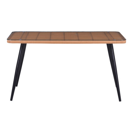 Τραπεζαρία Naoki-Tanish σετ 5 τεμ γυάλινο- pe rattan σε φυσική απόχρωση με μαυρα πόδια 140x80x78εκ