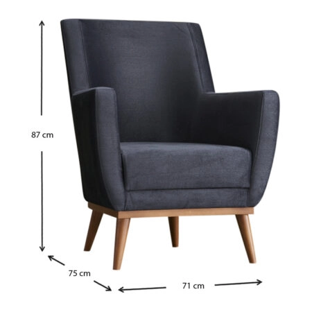 Μπερζέρα – πολυθρόνα Gonca βελούδινη χρώμα ανθρακί 71x75x87εκ.