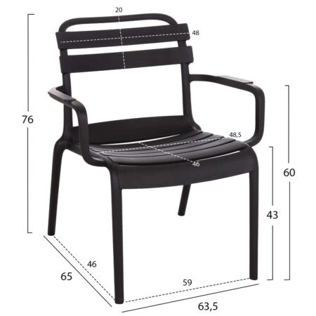 Πολυθρόνα πολυπροπυλενίου Sebia Eco χρώμα ανθρακί 60x58x80εκ.