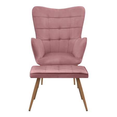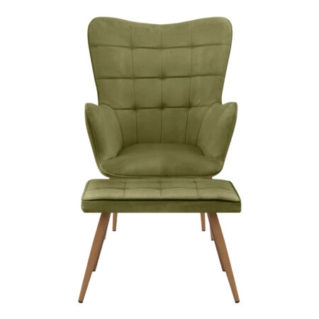Πολυθρόνα – Μπερζέρα με υποπόδιο Lily Megapap σάπιο μήλο βελούδο – μεταλλικό πόδι χρώμα φυσικό 70x62x98εκ.