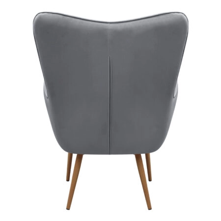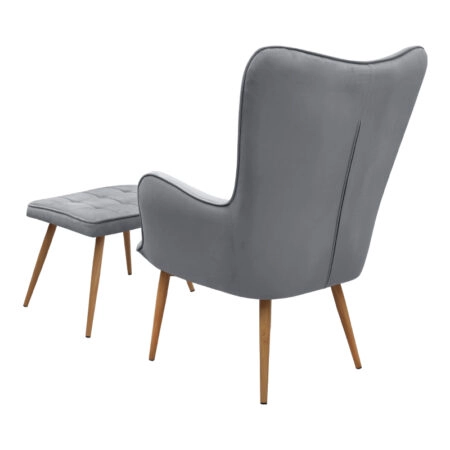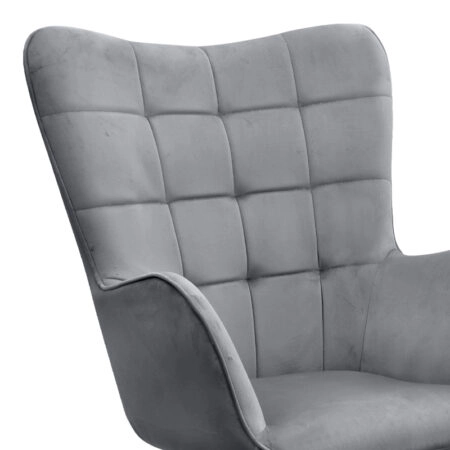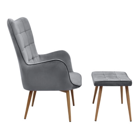 Πολυθρόνα – Μπερζέρα με υποπόδιο Lily Megapap γκρι βελούδο – μεταλλικό πόδι χρώμα φυσικό 70x62x98εκ.