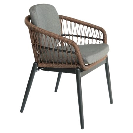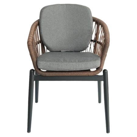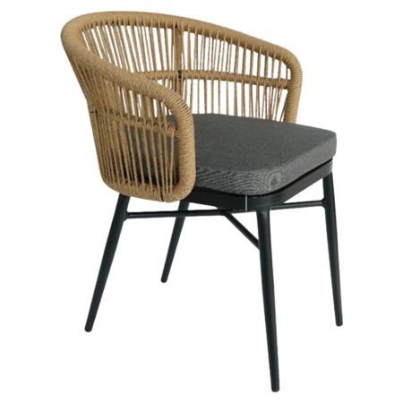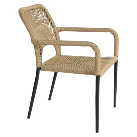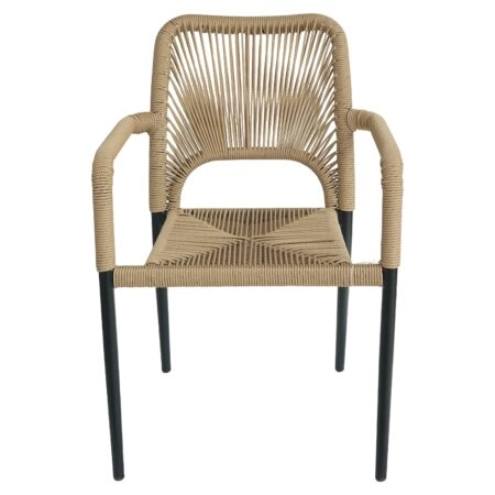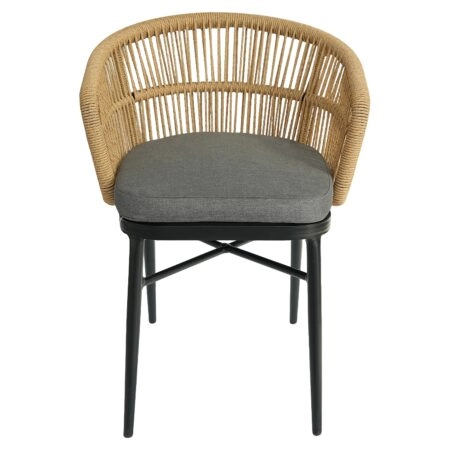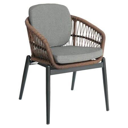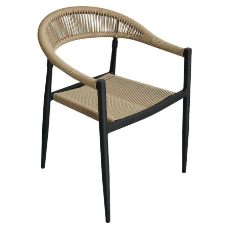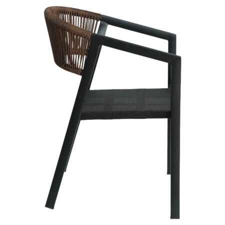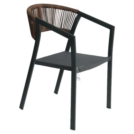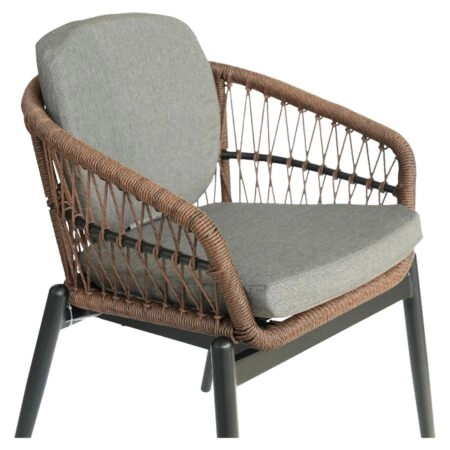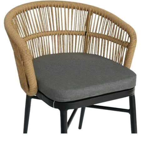 Πολυθρόνα αλουμινίου Raven στοιβαζόμενη ανθρακί σκελετός-textilene φυσικό rattan 57x62x78εκ