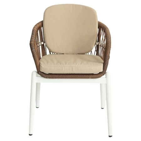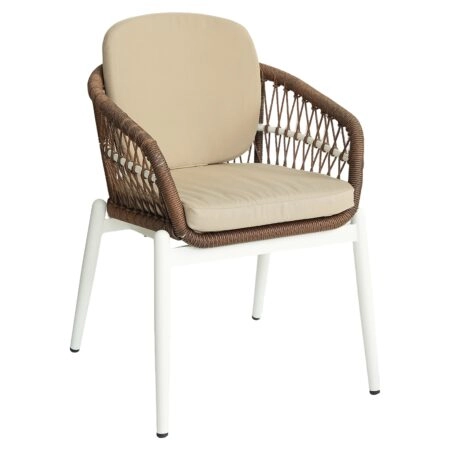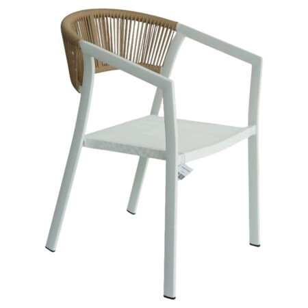 Πολυθρόνα αλουμινίου Glisten στοιβαζόμενη λευκός σκελετός-textilene φυσικό rattan 56x62x77εκ