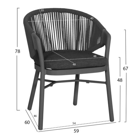 Πολυθρόνα Isaia μαύρο αλουμίνιο-textilene μαύρο 57x57x83εκ