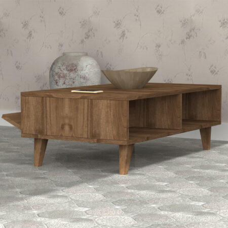 Τραπεζάκι σαλονιού Roy με σερβιτόρο από μελαμίνη χρώμα καρυδί 121x69x40εκ.