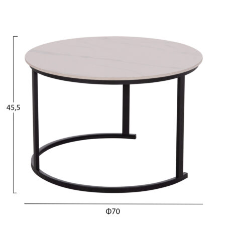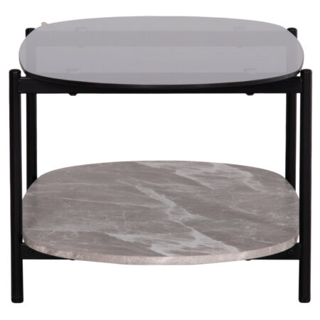 Τραπέζι Κήπου ARELLIUS Φυσικό/Μαύρο Μέταλλο/Rattan/Γυαλί 45x45x46cm