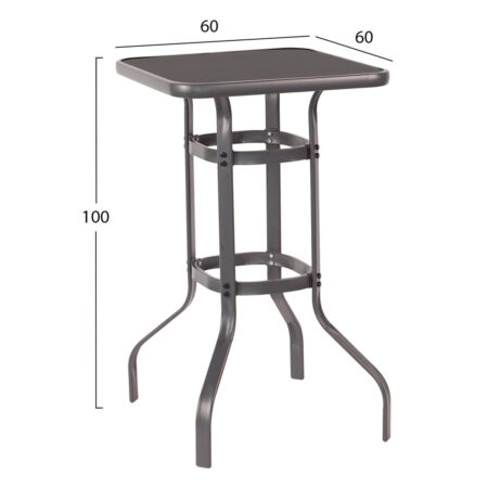 Τραπέζι Κήπου ANTIUS Γκρι/Μαύρο Μέταλλο/Rattan/Γυαλί 80x80x73cm