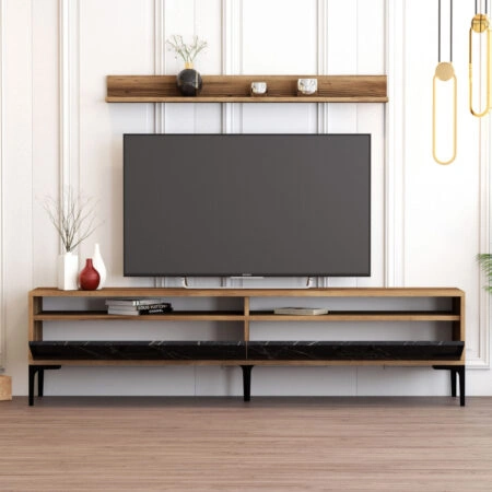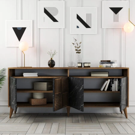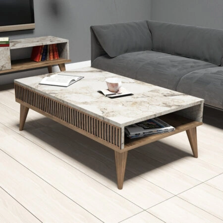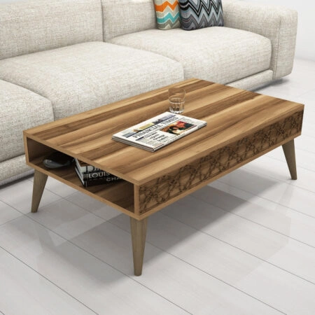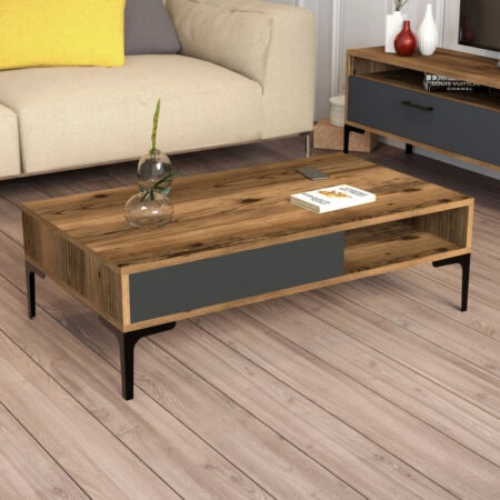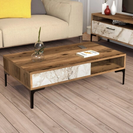 HADSTON COFFEE TABLE ΧΡΥΣΟ ΜΑΥΡΟ ΜΑΥΡΟ 80x80xH40cm