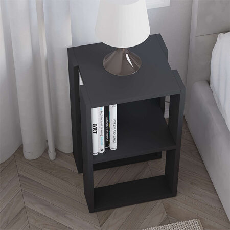 Κομοδίνο – τραπεζάκι βοηθητικό Lonie από μελαμίνη χρώμα ανθρακί 34x30x55εκ.