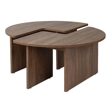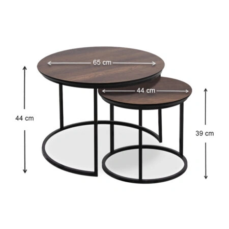 Τραπεζάκι σαλονιού σετ 2 τμχ Moira Megapap χρώμα καρυδί Ø90×41εκ.
