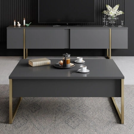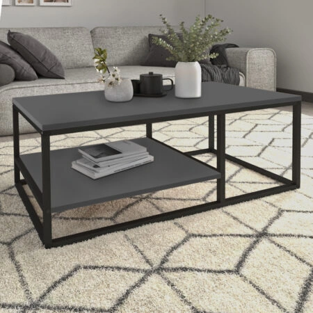 Τραπεζάκι σαλονιού Kane μεταλλικό – μελαμίνης χρώμα ανθρακί 106x50x42εκ.