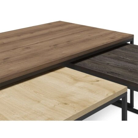 Τραπεζάκι σαλονιού σετ 3 τμχ. Camelia Megapap χρώμα ανοιχτό καρυδί – sapphire oak – καφέ 110x60x41,8εκ.