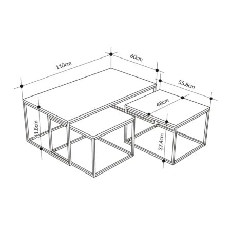 Τραπεζάκι σαλονιού σετ 3 τμχ. Kanta Megapap χρώμα sapphire oak – silky black 80x50x40,5εκ.