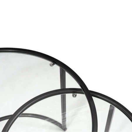 Τραπεζάκι σαλονιού σετ 2 τμχ Vetro Megapap μέταλλο – γυαλί χρώμα μαύρο Ø60×43εκ.