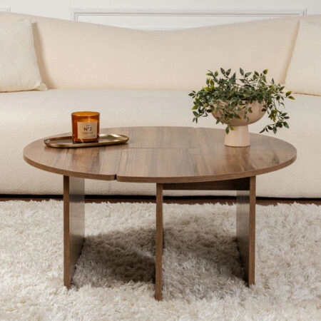 Τραπεζάκι σαλονιού Nilvia χρώμα καρυδί Ø85×35εκ.
