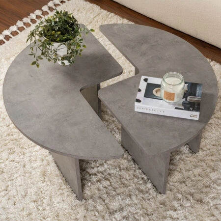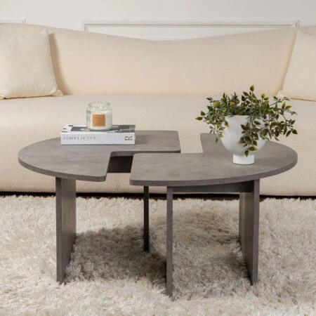 Τραπεζάκι σαλονιού σετ 2 τμχ Moira Megapap χρώμα γκρι σκυροδέματος Ø90×41εκ.